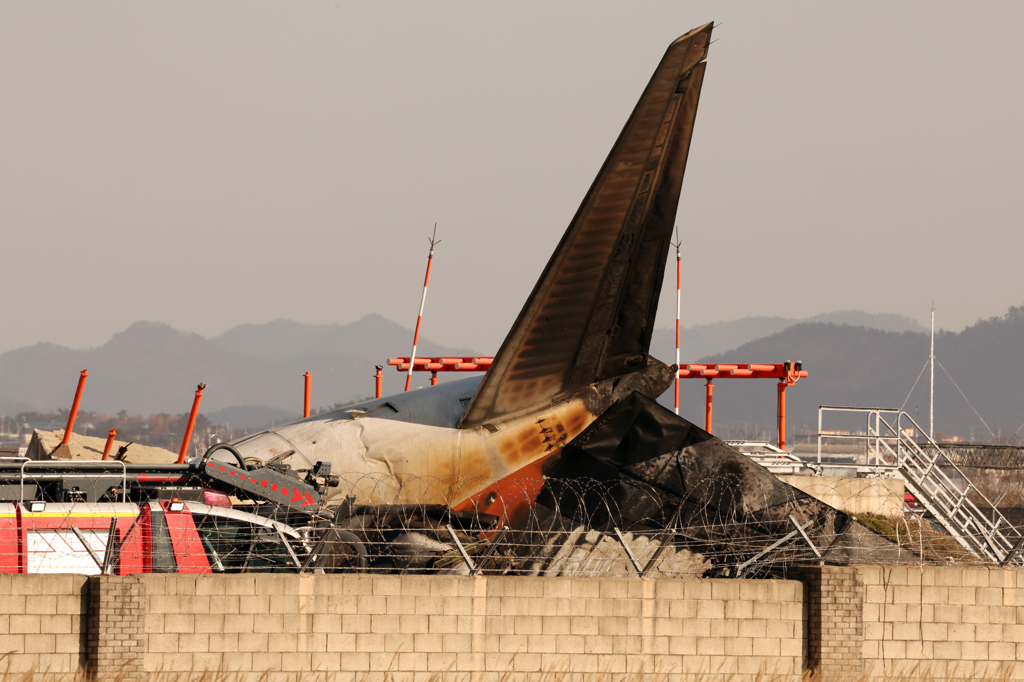 항공기의 손상된 꼬리 부분입니다. 사고의 심각성을 잘 보여줍니다.